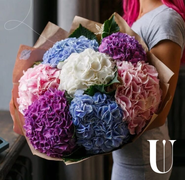 - Лента атласная - 2. При виде удивительных воздушных соцветий возникает ощущение лёгкости. Огромный пушистый букет хочется подарить самым близким людям. Букеты из гортензии не имеют резкого запаха