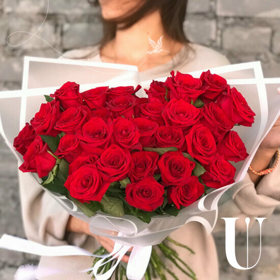 Роза - 39шт, упаковка дизайнерская - 1шт, лента атласная - 2шт
