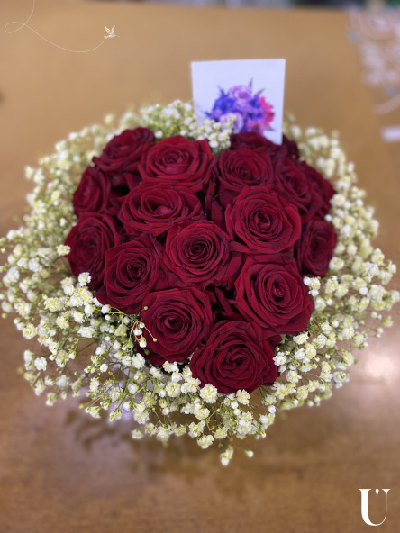 Монобукет из 23 розовых роз в дизайнерской упаковке