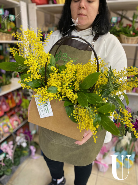 Нежный авторский букет из гербер, гвоздик и кустовых роз в стильной упаковке