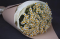 Монокомпозиция из белых хризантем в белой упаковке
