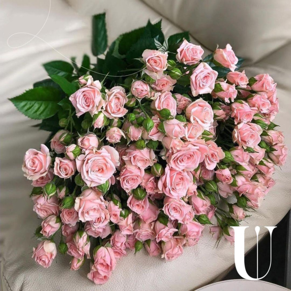 Монобукет из 23 розовых роз в дизайнерской упаковке