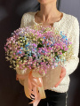 Нежный авторский букет из гербер, гвоздик и кустовых роз в стильной упаковке