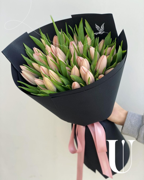 Монобукет из 23 розовых роз в дизайнерской упаковке