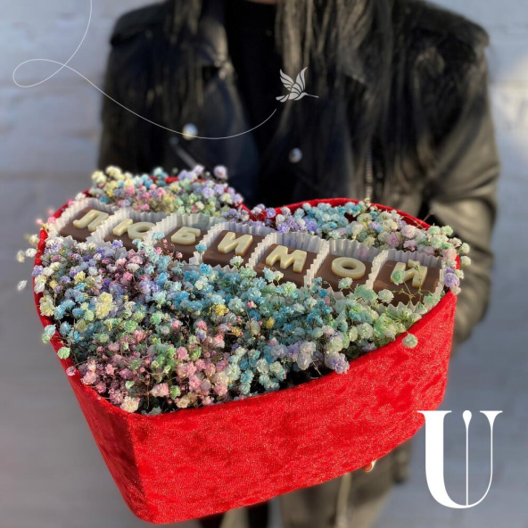 Нежный авторский букет из гербер, гвоздик и кустовых роз в стильной упаковке