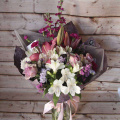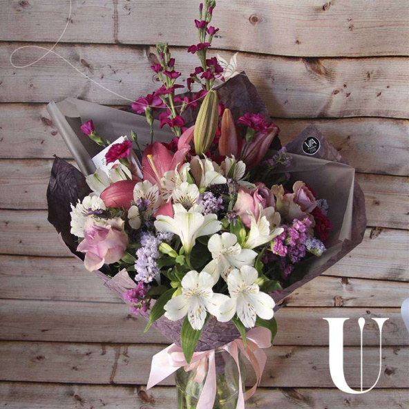 Не просто букет, а воплощение нежности и оригинальности в одном крафте! Нежнейшая лилия и необыкновенная маттиола, ароматная роза в обрамлении зелени - букет, который растопит сердце любой девушки своей красотой и разнообразием. *Если цветы отсутствуют в связи с окончанием сезона на них, заменяются на усмотрение флориста или с учетом пожеланий клиента, общая стилистика букета и том остается неизменной!