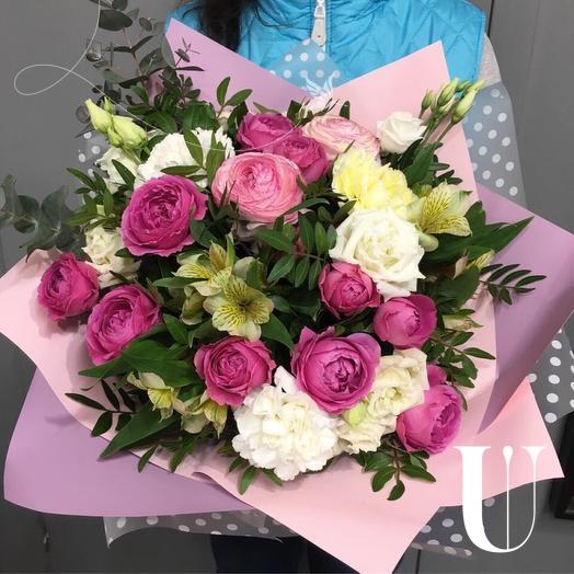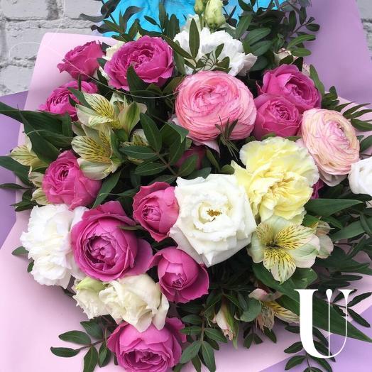 - Альстромерия - 4 шт. кустовая роза - 3 шт. диантус - 3 шт. эустома - 3 шт. роза - 3 шт.С помощью цветов мы не только поздравляем с праздником или выражаем свои чувства близким людям