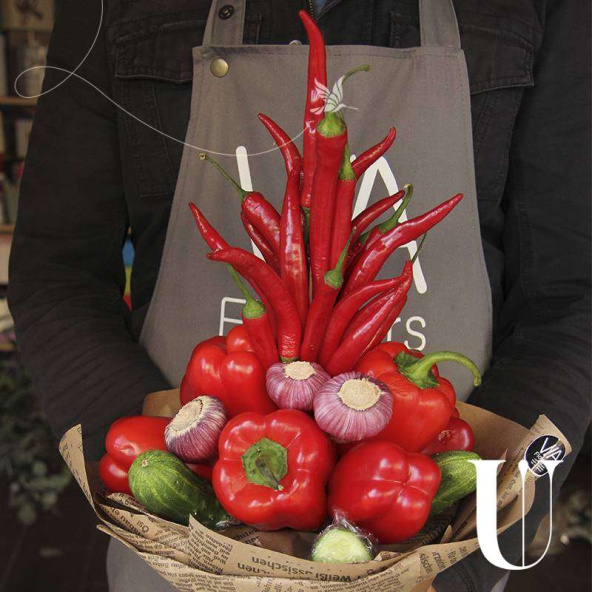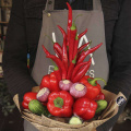 Съедобный букет придется по вкусу всем, независимо от пола и возраста! Коллега, учитель, подруга - все оценят эту очаровательную компанию из ярких ароматных овощей в стильном исполнении