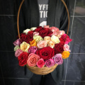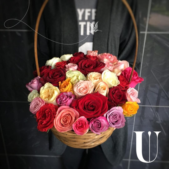 - Роза микс - 35 шт. корзина - 1 шт. губка флористическая - 1 шт. Фантастические цветы и волшебные утонченные оттенки