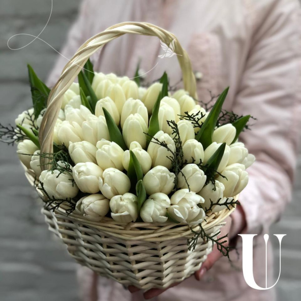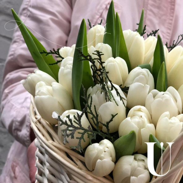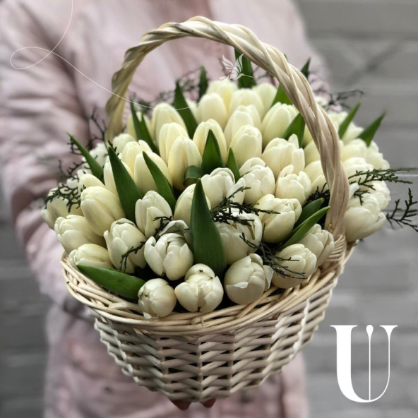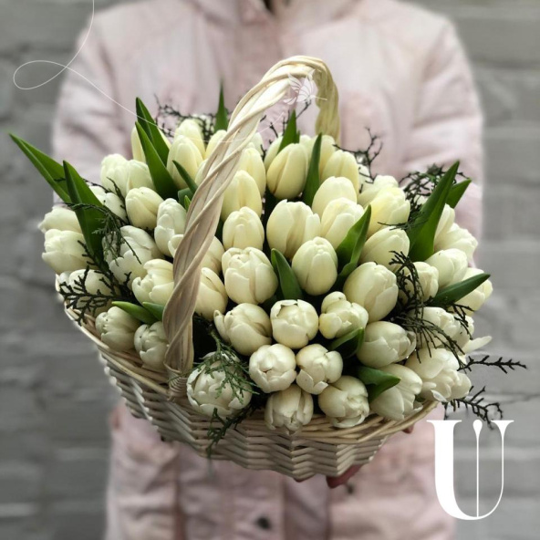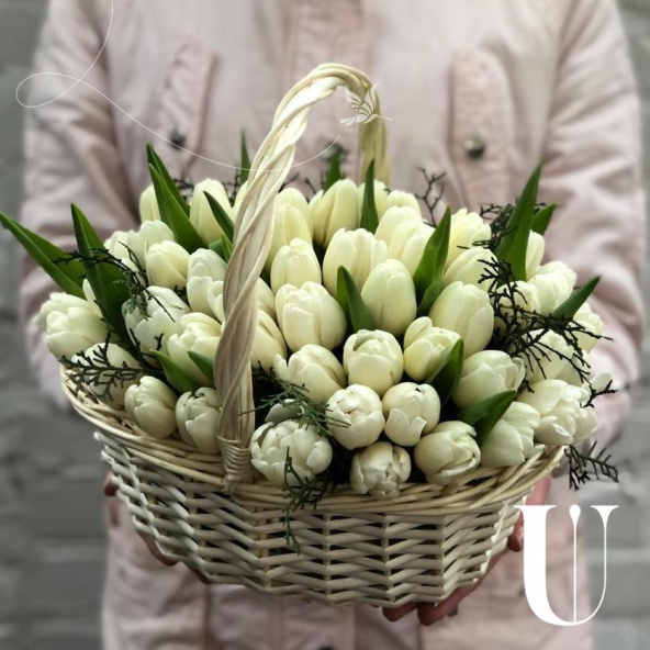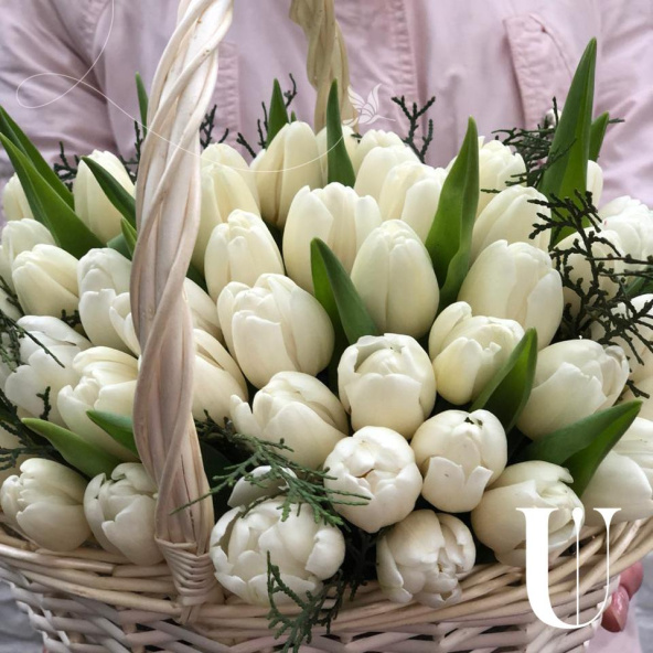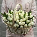 Корзина белых тюльпанов