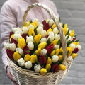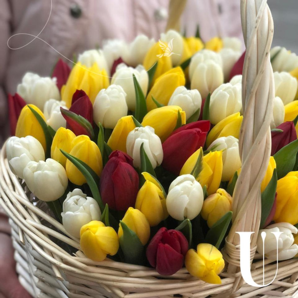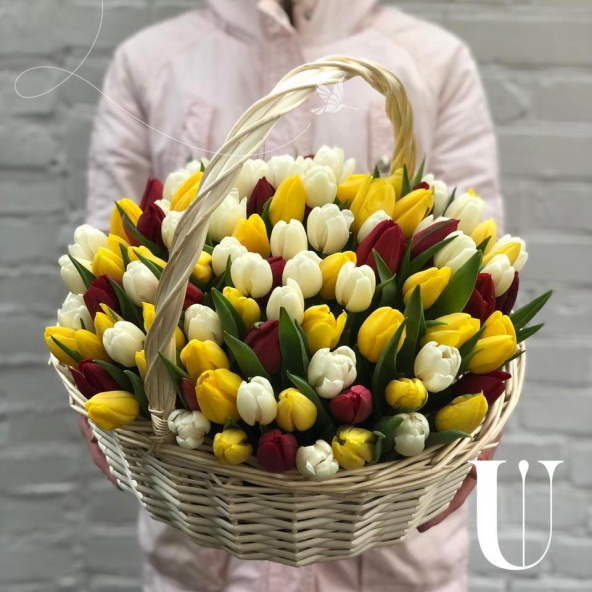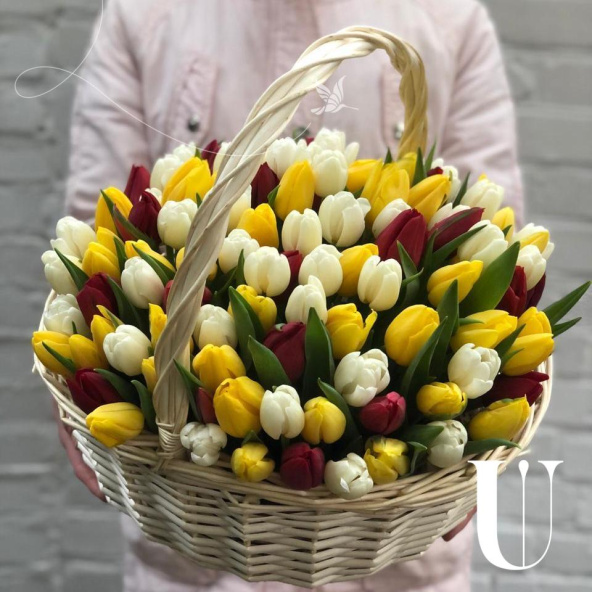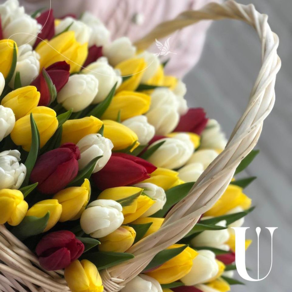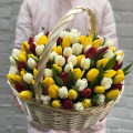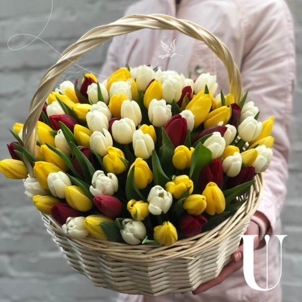 Тюльпан микс - 101, губка флористическая - 2, корзина - 1