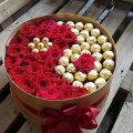 - Коробка 40 см, губка - 4 шт, ферреро роше - 32 шт, роза красная - 25 шт