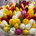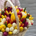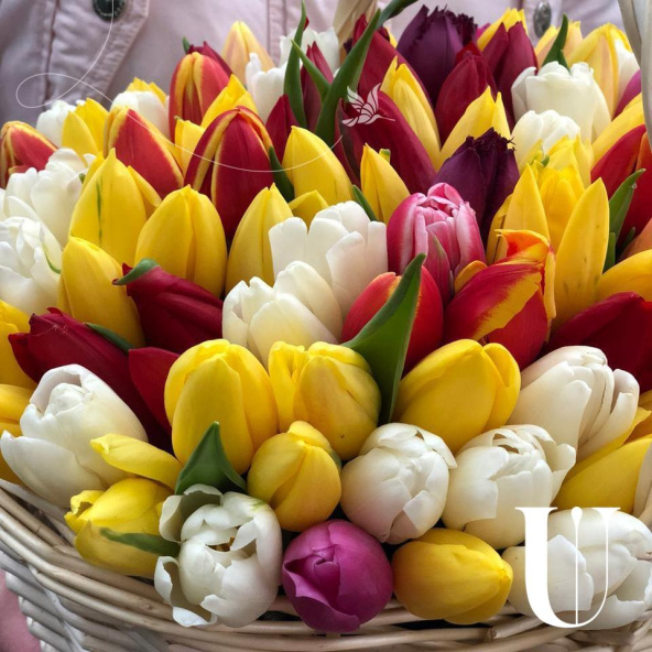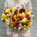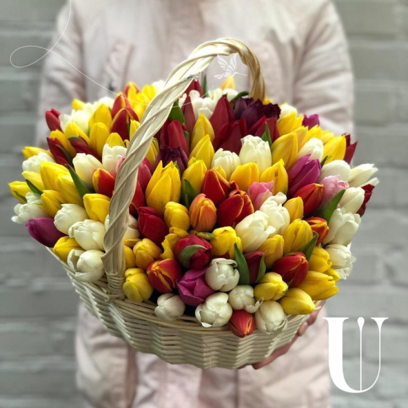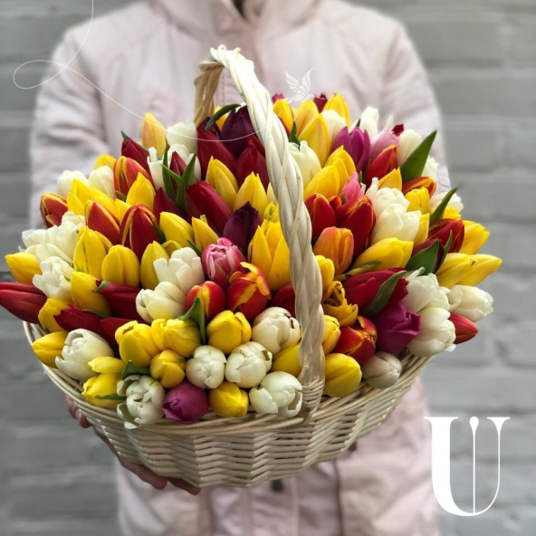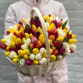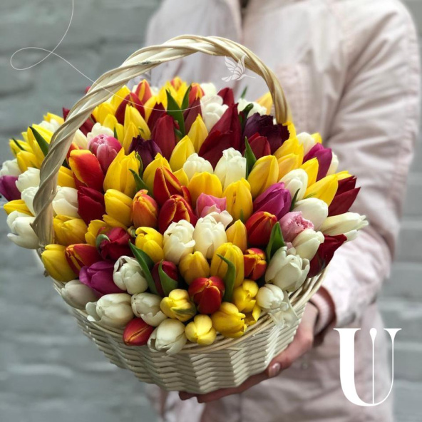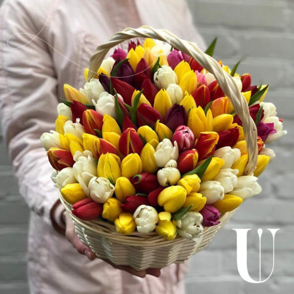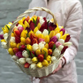 Тюльпан микс - 121, губка флористическая - 2, корзина - 1