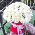 Этот потрясающий букет состоит из 101 розы . Каждая роза символизирует любовь, нежность и красоту, делая этот букет идеальным подарком для особого человека. Букет упакован в элегантную шляпную коробку, что добавляет шарма и изыска к данному подарку.