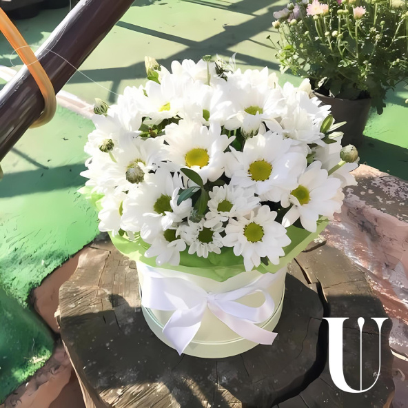 Цветы в коробке "Белоснежная хризантема"