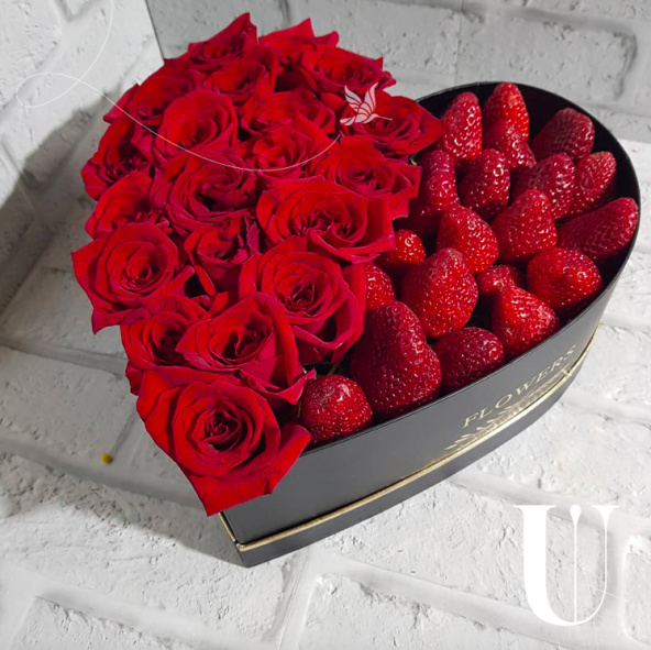 Подарить цветы красиво и вкусно! Букет из роз с клубникой в коробочке в виде сердца смотрится очень красиво и небанально. Нет сомнений, что подобный презент удивит и приятно порадует не только виновника торжества, но и остальных гостей. Такой букет запросто может стать ярким украшением стола