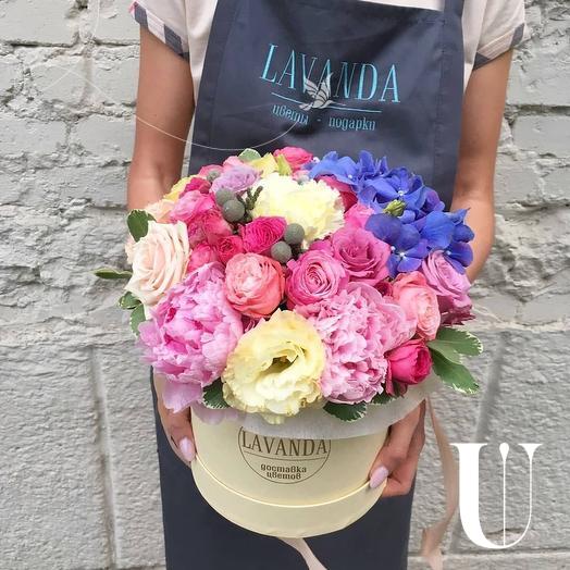 Элегантный и роскошный букет в шляпной коробке " симфония весны" создан специально для ценителей стиля и уверенных состоявшихся личностей. он выражает спокойствие и наслаждение жизнью, отлично подходит для вручения в качестве делового подарка, поздравления с бракосочетанием, на юбилей , на выписку из роддома. прекрасные гортензия и пионы делают композицию незабываемой, ведь эти два вида цветка не могут оставить равнодушными никого!