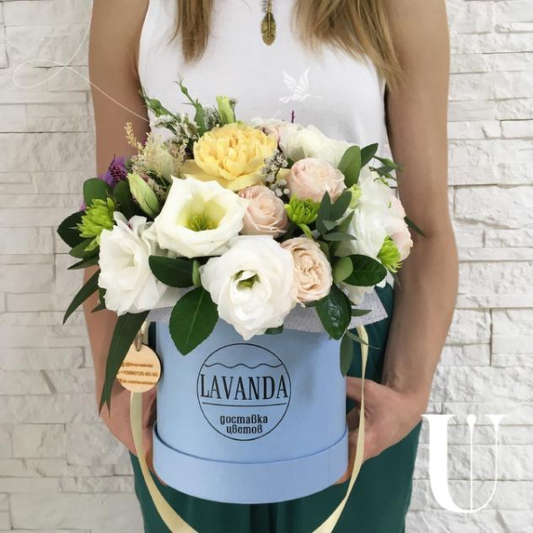 Цветы в коробке "Коробка BLUE midi воздушный поцелуй"