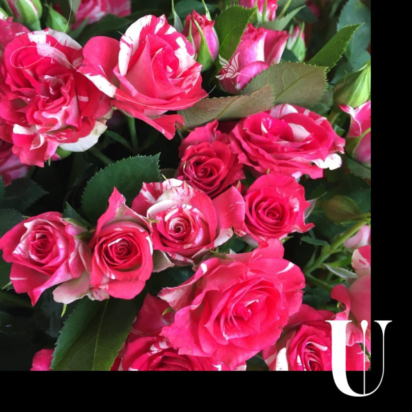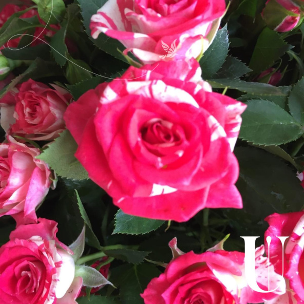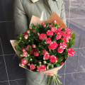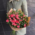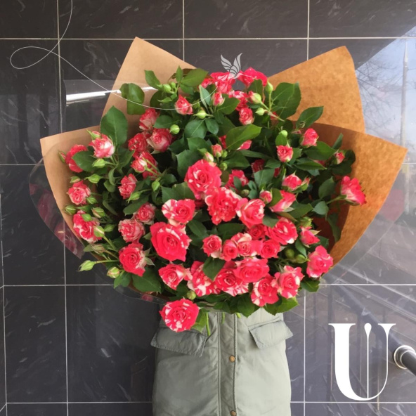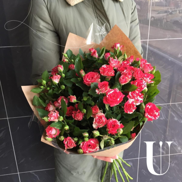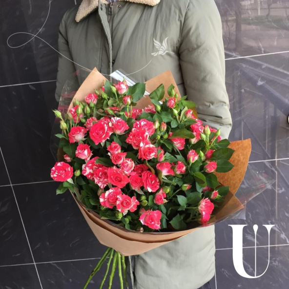 Роза кустовая - 9, упаковка дизайнерская - 2, лента атласная - 2