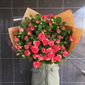Монобукет из 11 хризантем сорта Балтика Пинк в упаковке