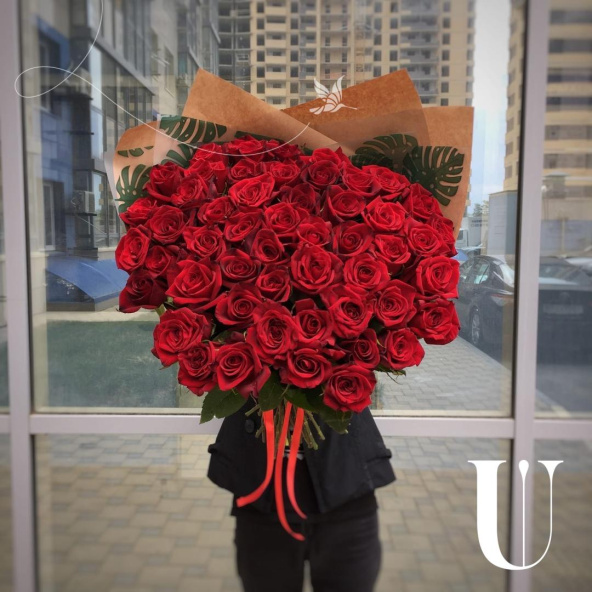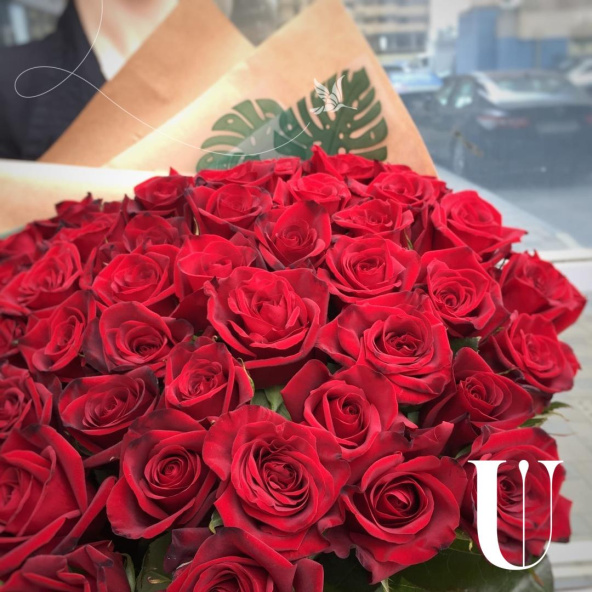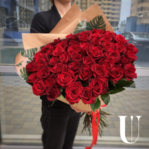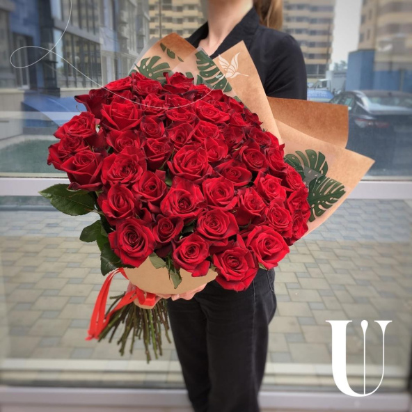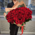 Букет из 25 роз сорта Ред Наоми в стильной упаковке
