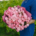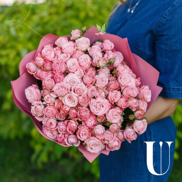 Роза пионовидная - 25 шт., Упаковка дизайнерская - 2 шт., Лента атласная - 2 шт.