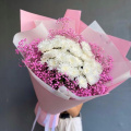 Классический букет из белых гвоздик и белой гипсофилы