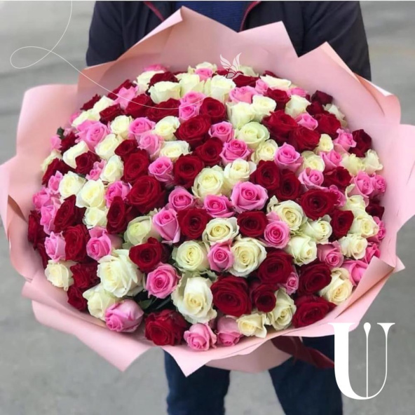 Роза микс - 151 шт., Упаковка дизайнерская - 4 шт.