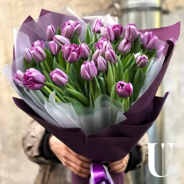 Тюльпан - 35шт, Упаковка дизайнерская - 3шт, Лента атласная - 2шт