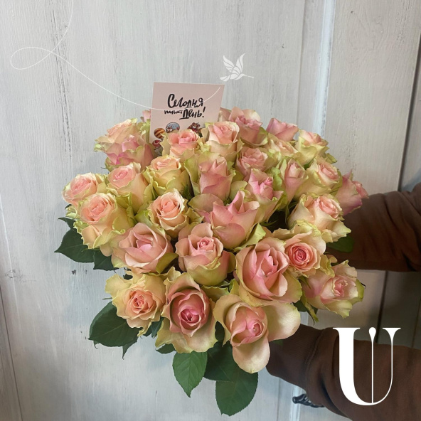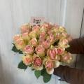 Монокомпозиция из нежных гвоздик в дизайнерской упаковке