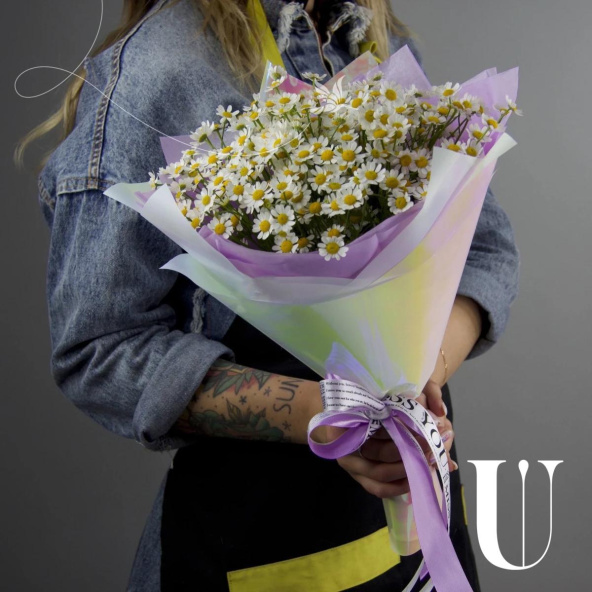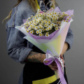 Получатель этого букета сказал курьеру о своих желаниях, которые отложились в памяти - "Хочется бежать по полю с охапкой ромашек и улыбаться"