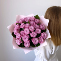 Букет из 25 белых роз сорта Аваланж в упаковке