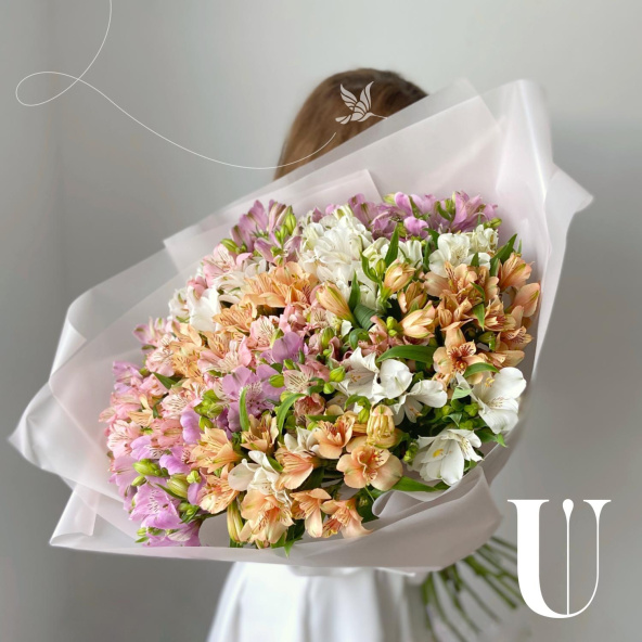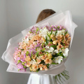 Монокомпозиция из нежных гвоздик в дизайнерской упаковке
