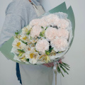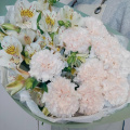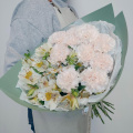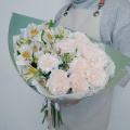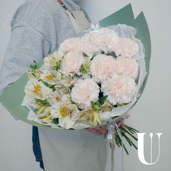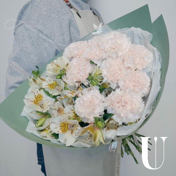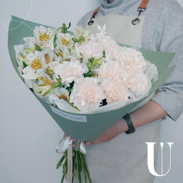 Стойкие, ароматные кремовые гвоздики в сочетании с лимонными альстрамериями