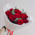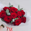 Эвкалипт в букете добавляет нотку свежести и изысканности. Его серебристо-зеленые листья создают контраст с темными розами, придавая композиции особую глубину и изящество. Аромат эвкалипта придает букету нотки свежести и чистоты, словно легкий ветерок в лесу.