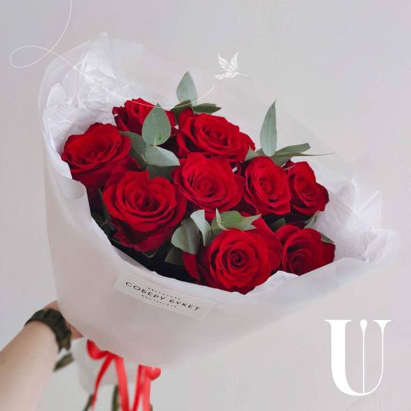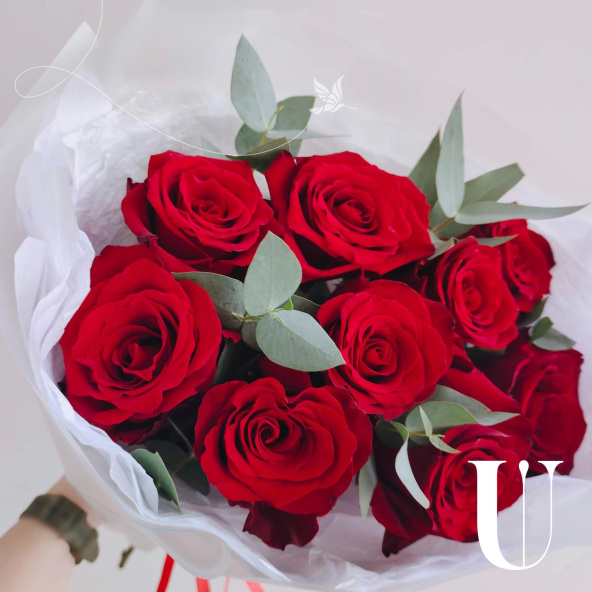Букет из бордовых роз и эвкалипта – это воплощение элегантности и изысканности. Бордовые розы, с их глубоким оттенком, символизируют страсть, любовь и роскошь. Их бархатистые лепестки напоминают о красоте и изыске. Аромат этих роз наполнен нотками чувственности и романтики.