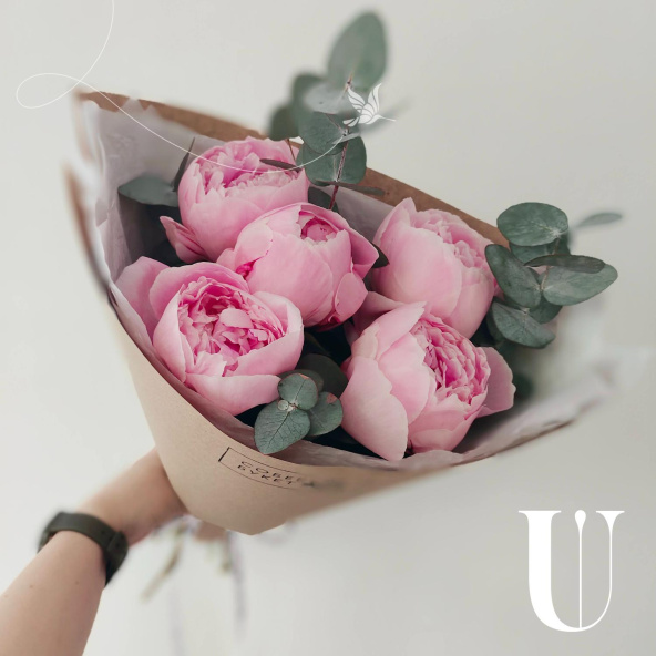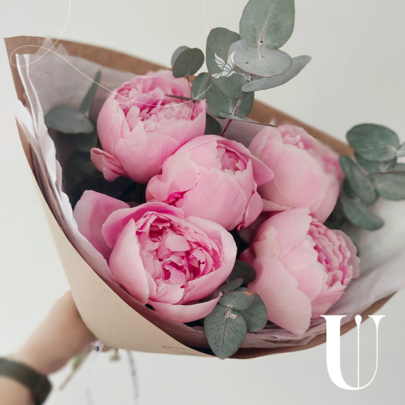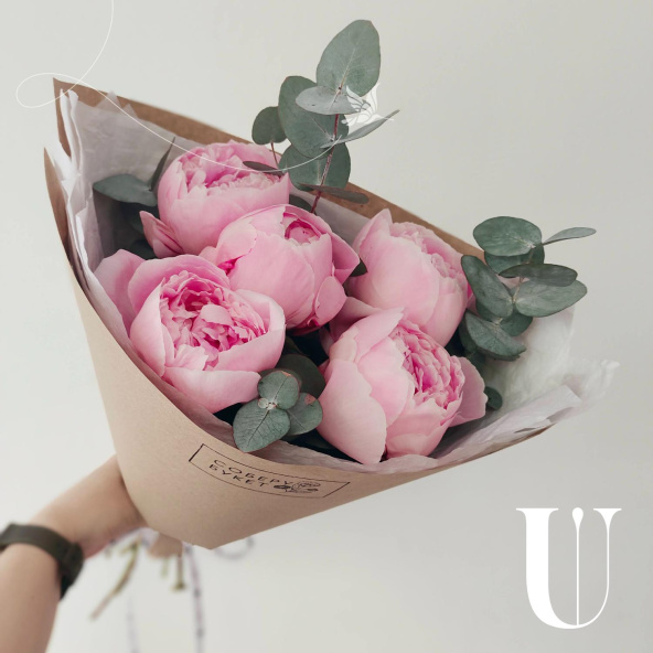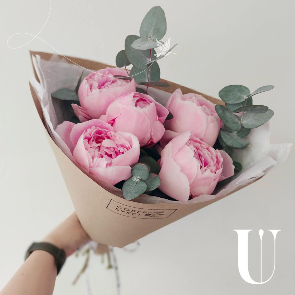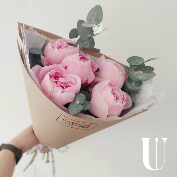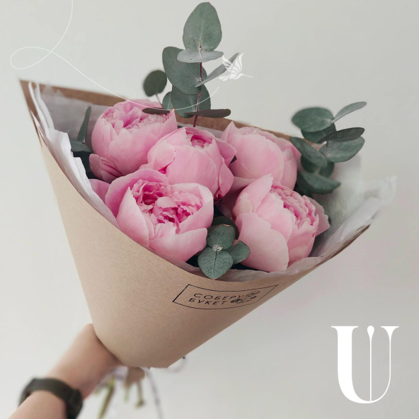Монокомпозиция из нежных гвоздик в дизайнерской упаковке