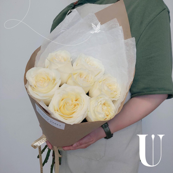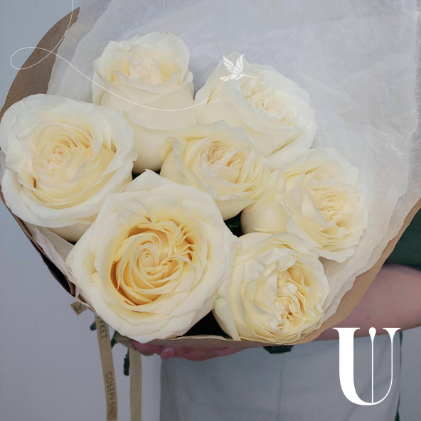 Нежные, роскошные пионовидные розы, ароматные, в стильном оформлении