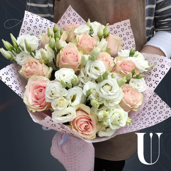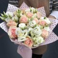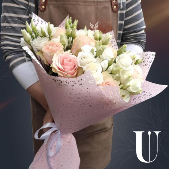 Классический сборный букет "Рэйчел" из розовых роз и белой эустомы в матовой пленке с атласной лентой - это стильный и изысканный подарок, который подойдет для любого повода. Букет включает в себя 21 цветок - 11 розовых Эквадорских роз и 10 белых эустом (лизиантусов). Розовые Эквадорские розы - это высококачественные цветы, которые известны своими насыщенными оттенками и приятным ароматом, который долго будет радовать вас и ваших близких. Белые эустомы (лизиантусы) придают визуальную легкость, свежесть и нежность.