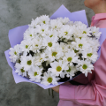 Классический букет из 7 белых кустовых ромашковых хризантем в матовой пленке с атласной лентой — это стильный и элегантный подарок для любого повода. Белые кустовые хризантемы, собранные в монобукет, украсят любой праздник или торжественное событие.