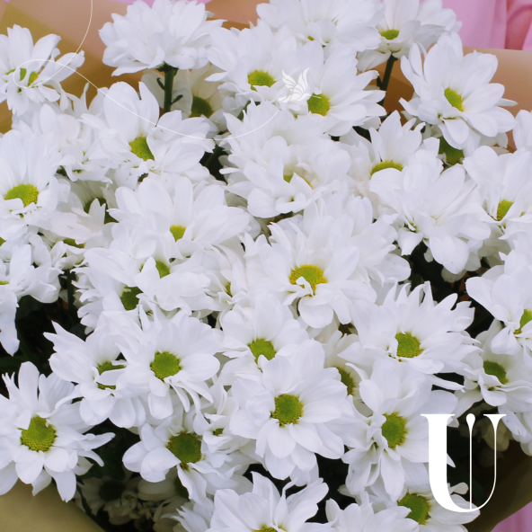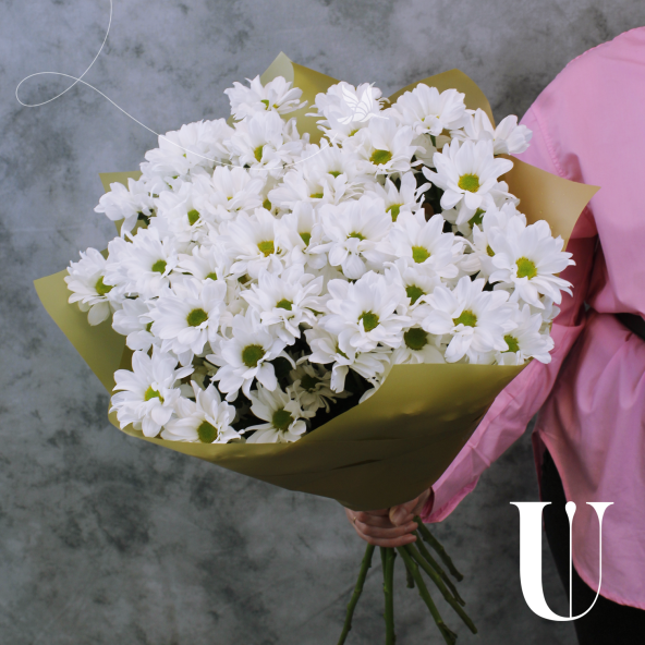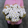 Монобукет из 9 белых кустовых ромашковых хризантем в матовой пленке с атласной лентой — это стильный и элегантный подарок для любого повода. Белые кустовые хризантемы в букете создают неповторимую нежную композицию, которая придется по вкусу даже самому искушенному получателю.