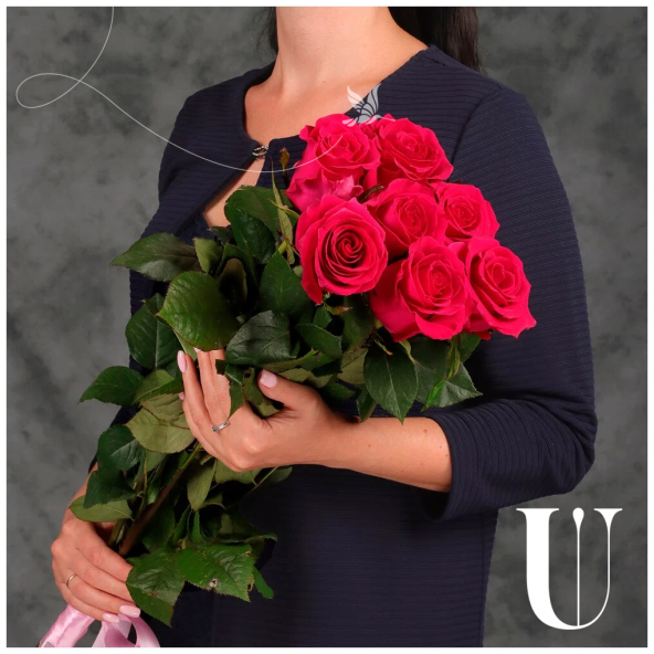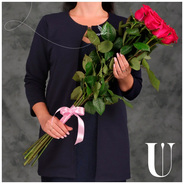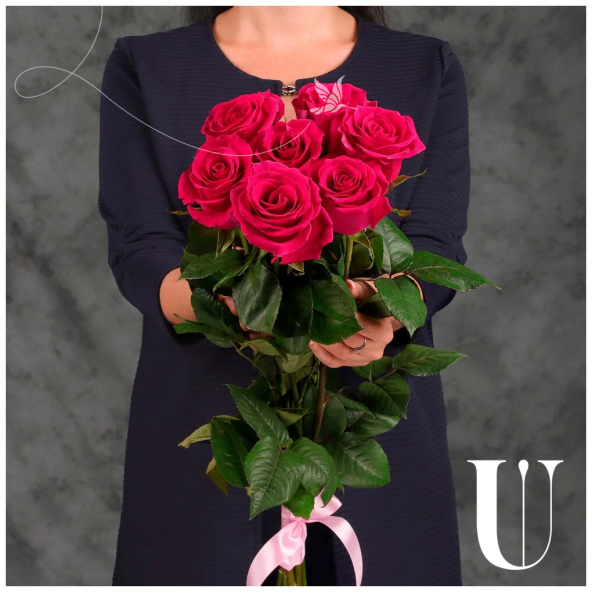 Букет из 7 розовых Эквадорских роз 60 см с атласной лентой - это стильный и элегантный подарок, который подойдет для любого повода. В составе букета розы сорта Пинк Флойд – это высококачественные цветы, которые известны своим насыщенным розовым цветом и приятным ароматом, который будет радовать вас и ваших близких.