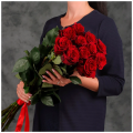 Букет из 11 красных Эквадорских роз 60 см с атласной лентой - это стильный и элегантный подарок, который подойдет для любого повода. В составе букета розы сорта Эксплорер – это высококачественные цветы, которые известны своим насыщенным красным цветом и приятным ароматом, который будет радовать вас и ваших близких.
