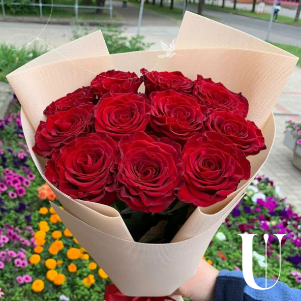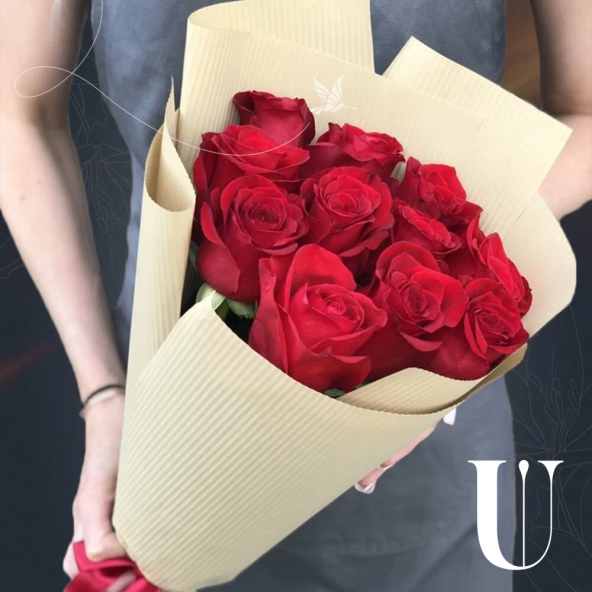 Монобукет из 11 красных Эквадорских роз в крафте с атласной лентой - это элегантный и стильный подарок, который станет отличным выбором для любого повода. В составе букета красные Эквадорские розы сорта Эксплорер - это высококачественные цветы, известные своими насыщенными оттенками и приятным ароматом, который долго будет радовать Вас и Ваших близких.
