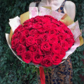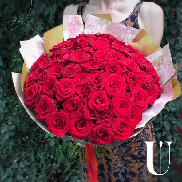 Роза Чёрная Магия 51 шт., упаковка дизайнерская 3 шт., лента атласная 2 шт.