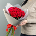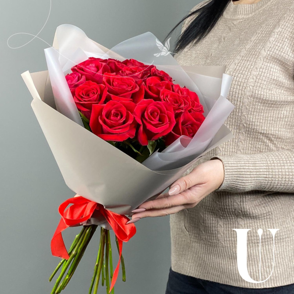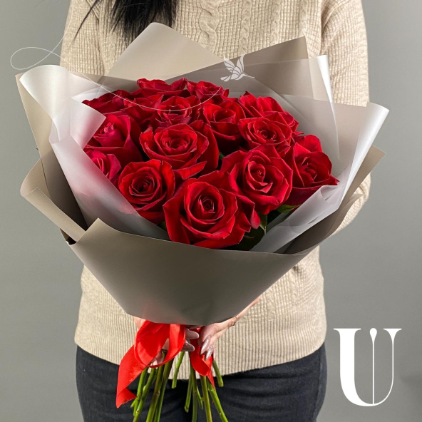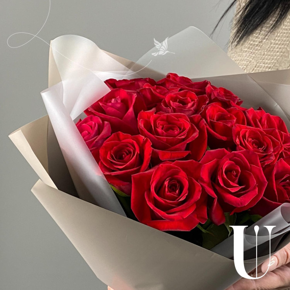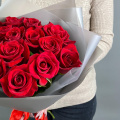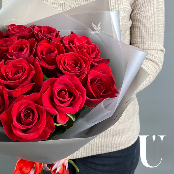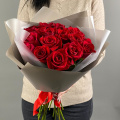 Монокомпозиция из нежных гвоздик в дизайнерской упаковке
