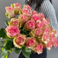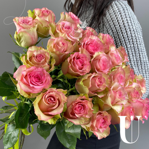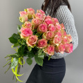 Большой монобукет из 25 белых роз 80 см с атласной лентой