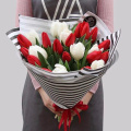 Микс из красно-белых тюльпанов,не заставит грустить и порадует в любой день