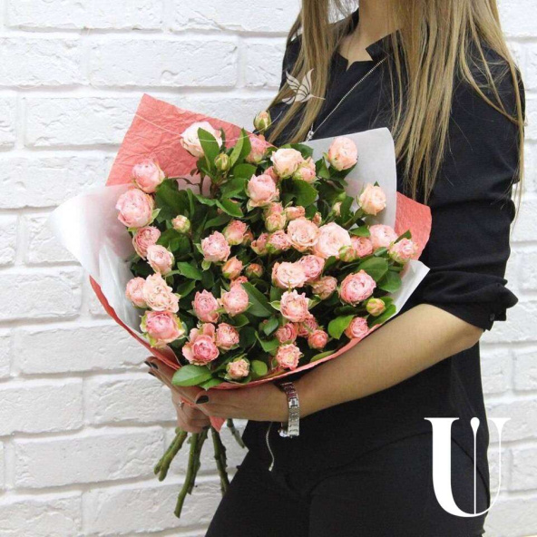 Кустовая роза в двойной упаковке. Нежный букет для самых романтичных натур!