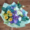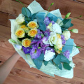 - Эустома - 3 шт. альстромерия - 3 шт. гвоздика - 3 шт. роза кустовая - 2 шт. зелень - 1 шт. упаковка - 1 шт